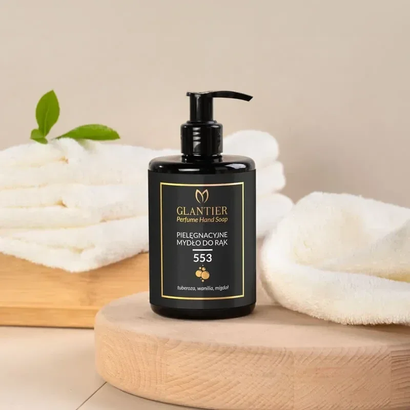 De rijke, olieachtige textuur schuimt licht, spoelt moeiteloos af en laat geen trekkerig gevoel achter. Glantier 553 betovert met een oosters-bloemige geur van tuberoos, romige amandelen en een subtiel vleugje koffie – een parfum dat de handen omhult en lang blijft hangen.